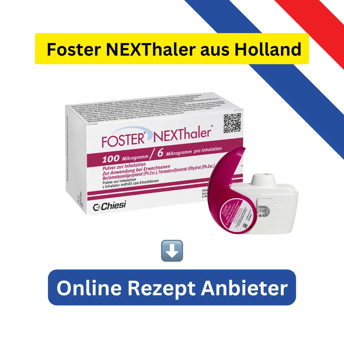 Wenn du Foster NEXThaler aus Holland kaufen willst, dann benötigst du dort ein Rezept genauso wie in Deutschland. Jedoch gibt es einen Online Rezept Service, der schon seit über 20 Jahren etabliert und bekannt ist. Das ist keine Neuheit und keine unseriöse Sache.